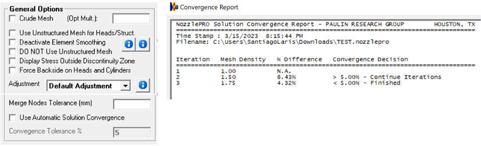 NozzlePRO also features the automatic solution convergence option during runs, which analyzes the user's model multiple times with different mesh densities to qualify the mesh density necessary and verify that no singularities exist in the model. Once the series of runs is complete, NozzlePRO displays a report to show the mesh convergence.